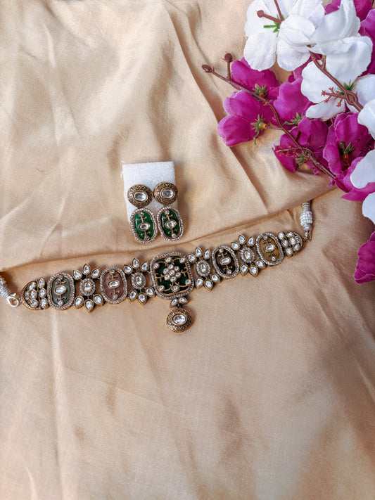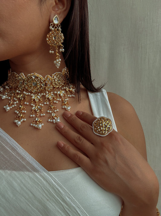 Esme Kundan Pearl Choker with Earrings & Tika