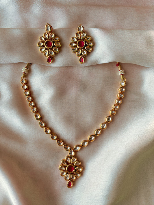 Bella Kundan Flower drop Necklace Set