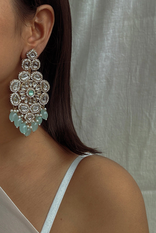 Amelia Kundan Statement Earrings- Pista