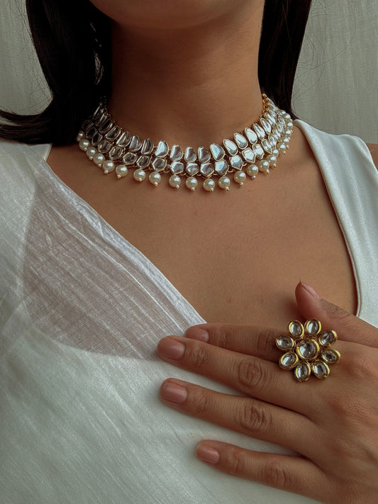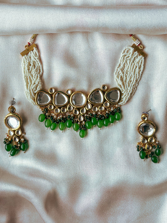 Rani's Regal 4 layered Kundan Necklace with Earrings