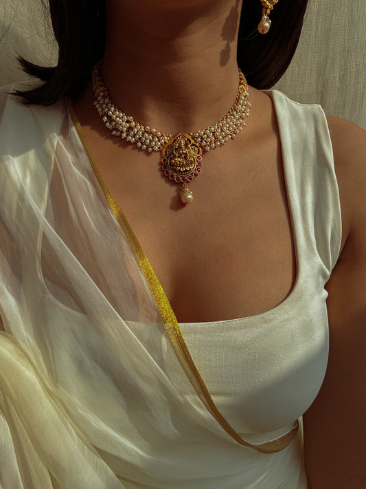 Kumari Pearl Cascade Choker with Earrings