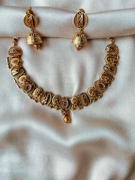 Nora Gold & Red Temple Necklace Set